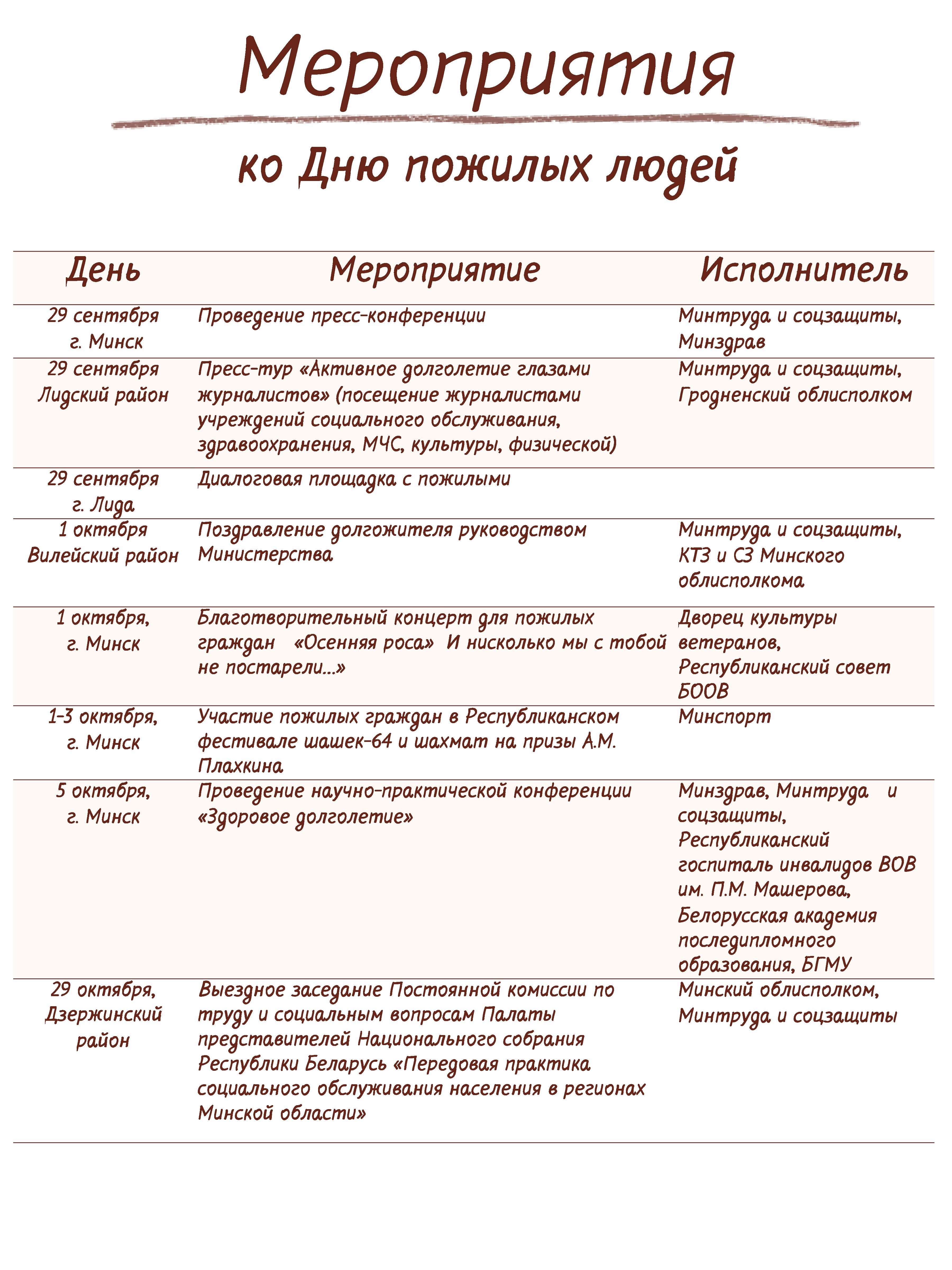 Мероприятия к дню пожилых людей