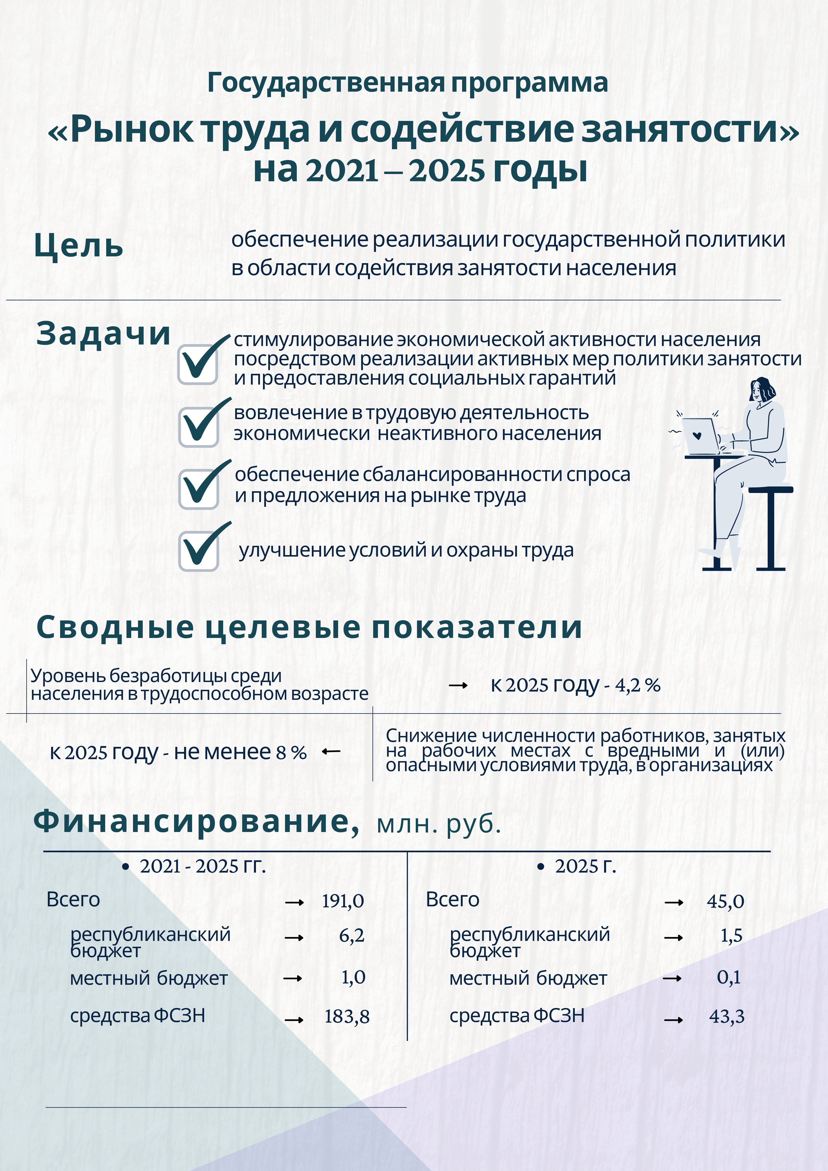 Главная / Меню языков / Программные документы / Государственные программы 2021 – 2025 годы / Государственная программа «Рынок труда и содействие занятости» на 2021 – 2025 годы