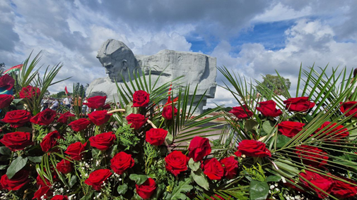Сокрушившая агрессора непокоренная Родина возродилась из руин, преодолела тяжелые последствия беспощадной войны и сегодня достойно движется вперед по суверенному пути развития.