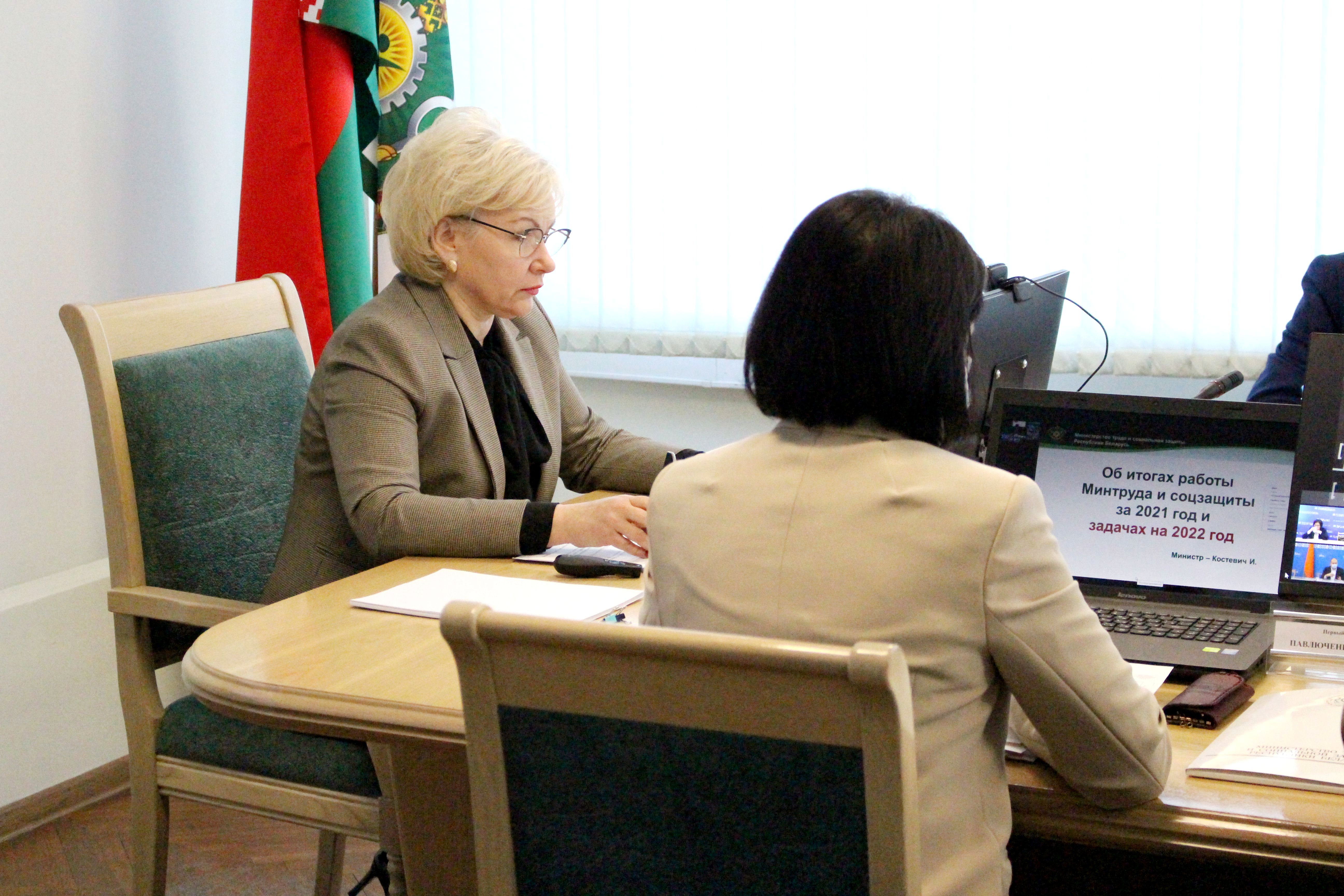 С основным докладом об итогах работы системы Министерства труда и социальной защиты в 2021 году и задачах на предстоящий период выступила Министр труда и социальной защиты Ирина Костевич.