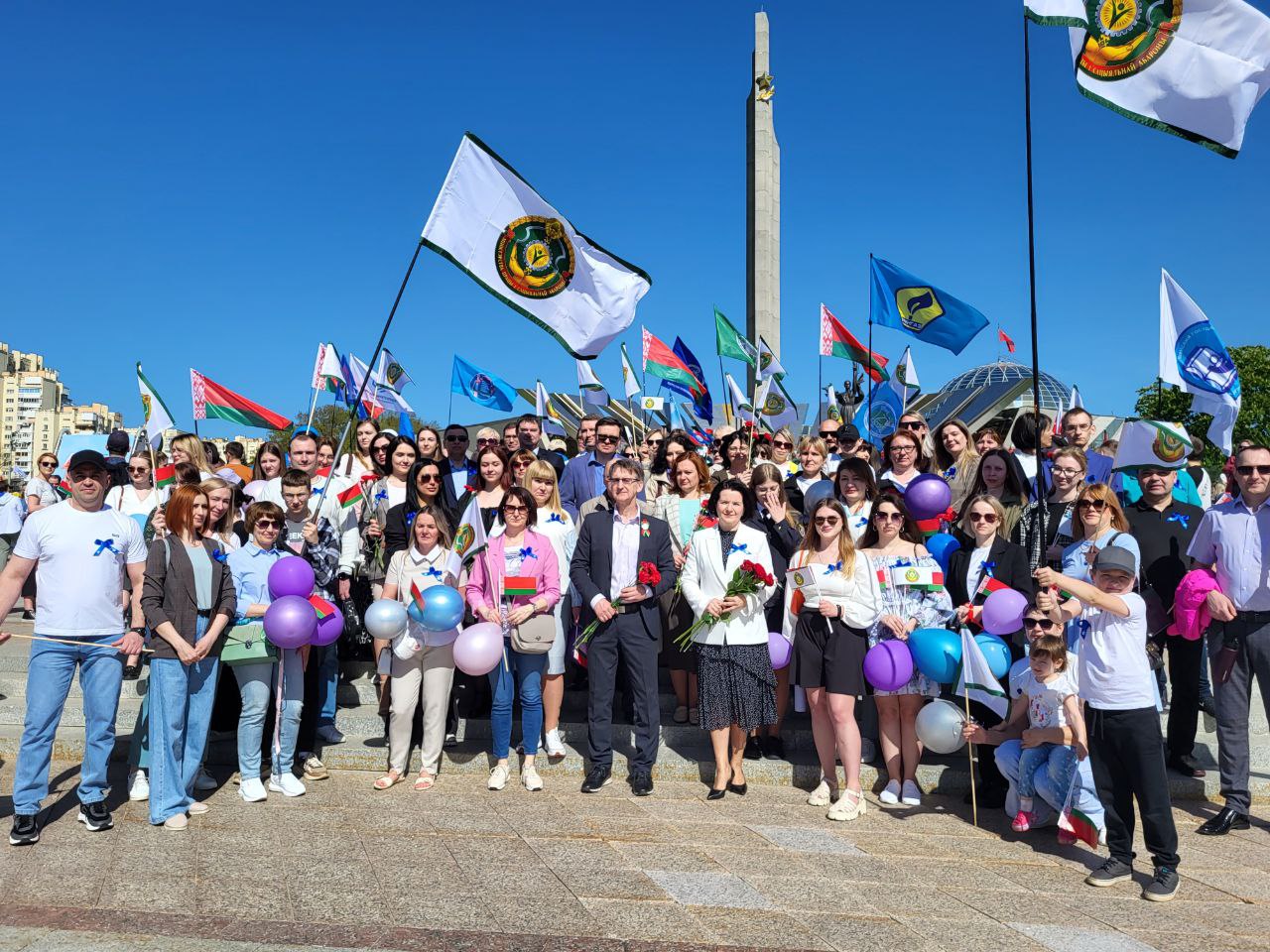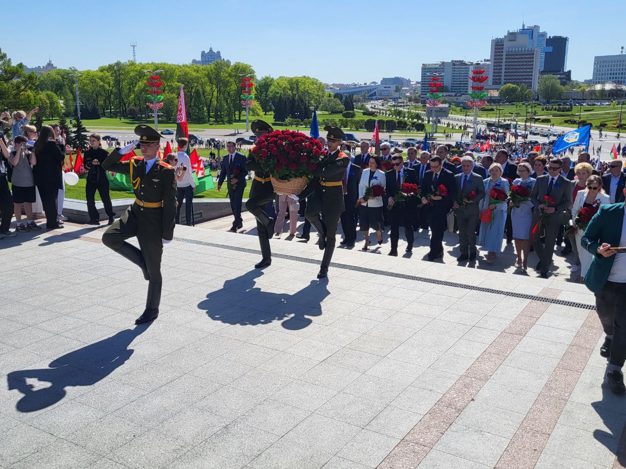 Первым делом были возложены цветы к стеле «Минск – город-герой».