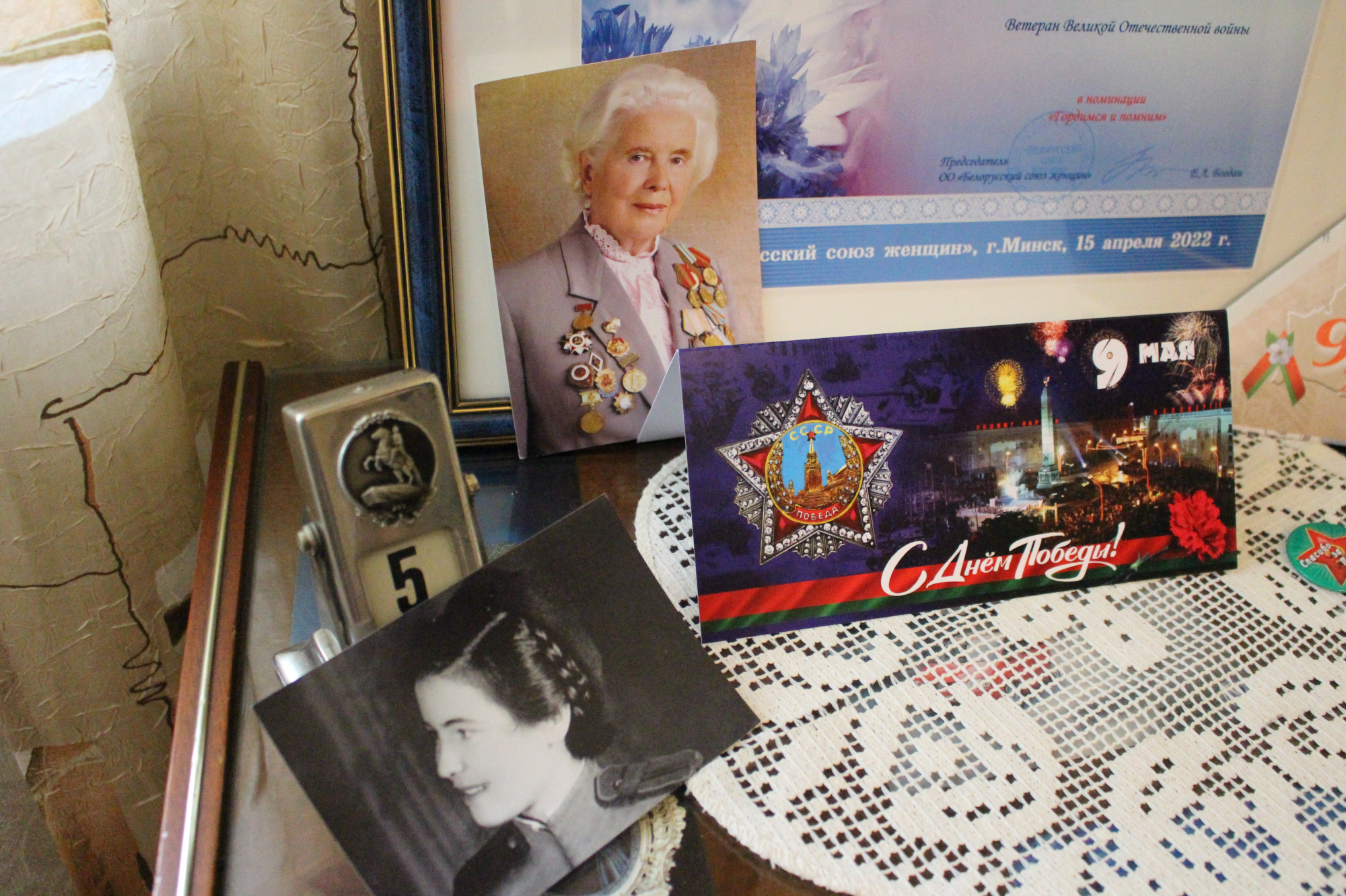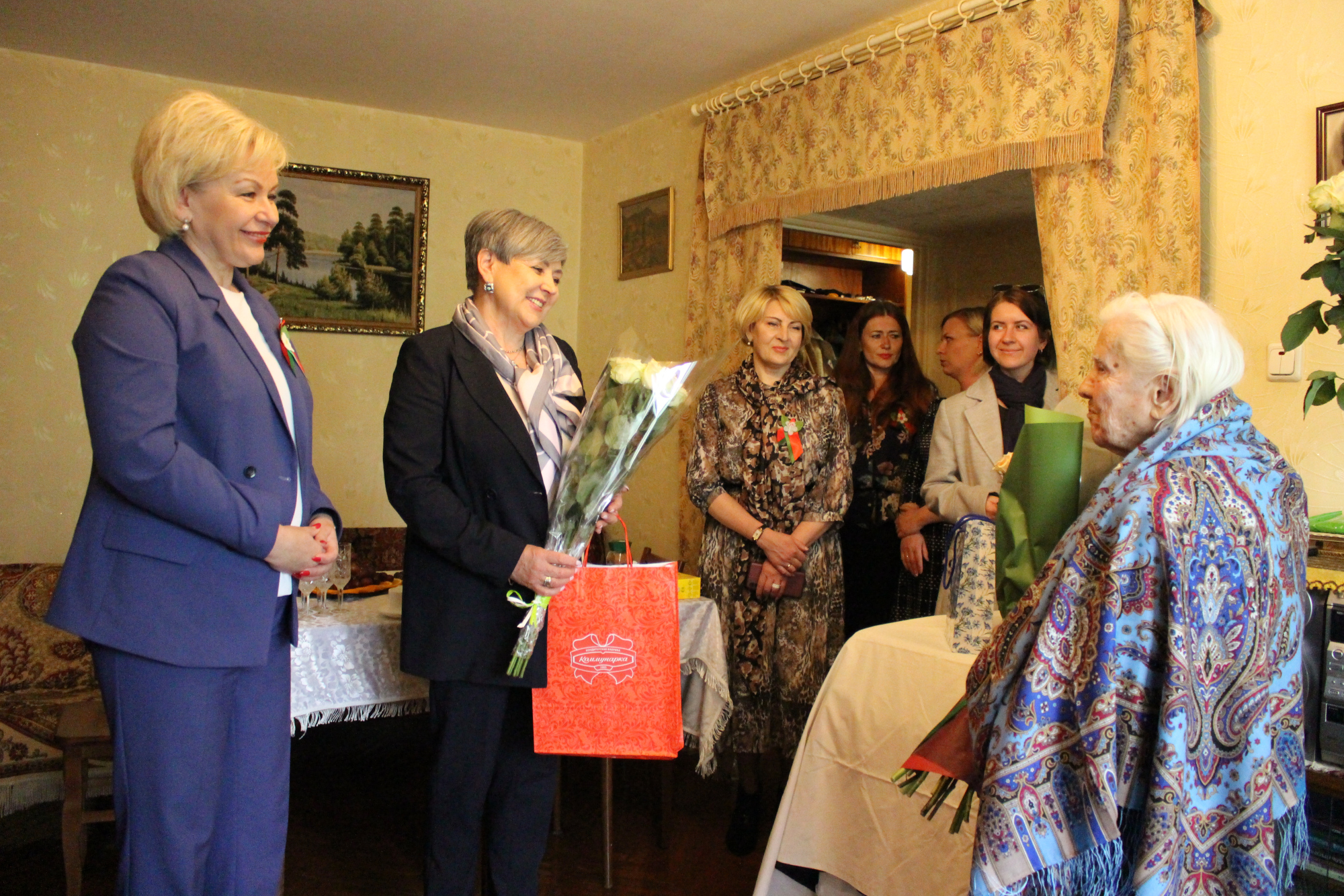 Ирина Костевич вручила цветы, памятные подарки, а также поблагодарила ее за мужество и героизм в годы войны: