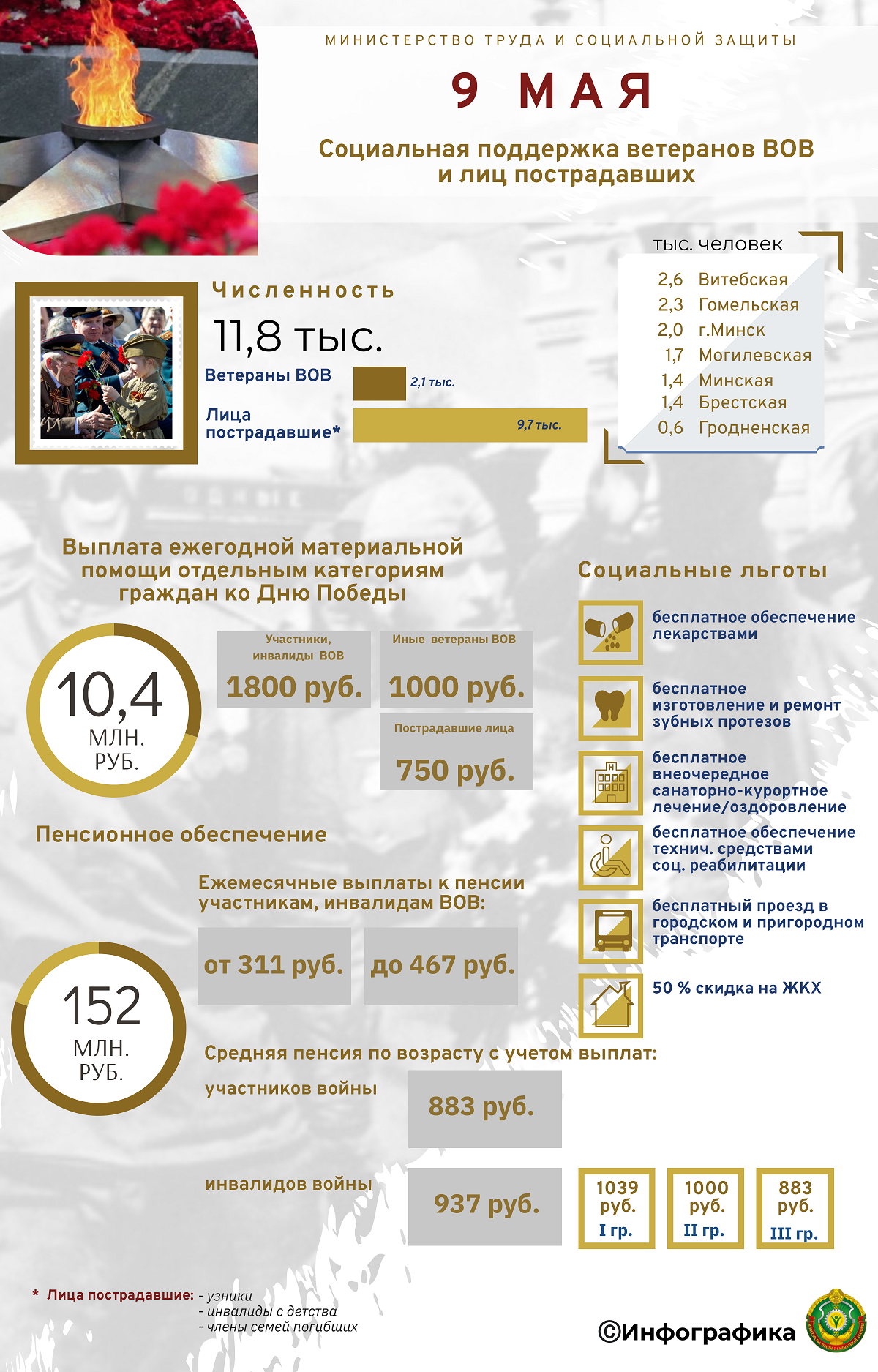 Инфографика: социальная поддержка ветеранов ВОВ и лиц пострадавших