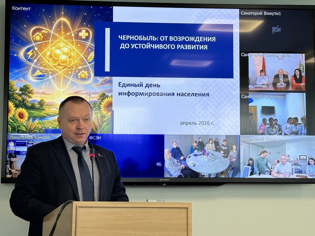 Перед работниками на тему «Чернобыль: от возрождения до устойчивого развития»  выступил заместитель начальника Департамента по ядерной и радиационной безопасности МЧС Республики Беларусь Дмитрий Павлов.